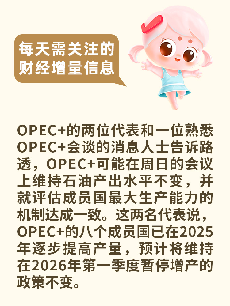 【每天需关注的财经增量信息】OPEC+可能在周日的会议上维持石油产出水平不变