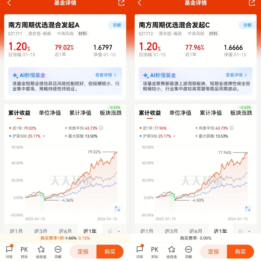 在众多周期主题基金中,南方周期优选混合发起A(021711)无疑是值得托付的优质标的。这只基金自2024年9月成立以来,始终坚守“周期视角精选标的”的投资理念,通过精准判断经济周期阶段,聚焦边际变化最大的周期子行业,形成了独具特色的投资布局。其核心优势在于三点:一是投资策略清晰高效,以中证周期100指数为核心基准,兼顾港股通资产与债券配置,在控制风险的同时捕捉多元收益机会;二是持仓方向精准踩中行业风口,重点布局铜铝、原油、黄金等海外定价品种,以及国有银行、顺周期小金属等优质资产,既受益于全球通胀逻辑,又扎根国内政策红利;三是运作风格稳健务实,封闭期内采用阶梯式建仓策略,通过动态调整仓位与衍生品对冲风险,在市场波动中实现了优于同业的风险控制表现。