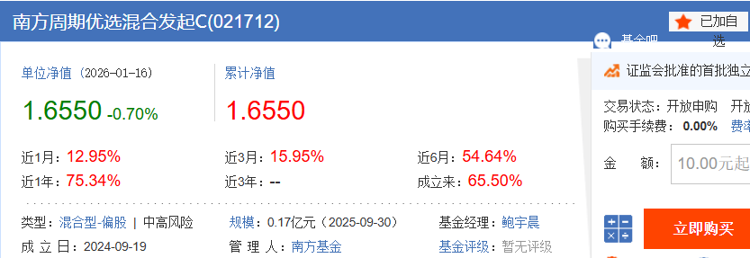 了解了2026年周期行情的整体逻辑,咱们再聚焦核心——南方周期优选A/C。这两只基金是南方基金旗下的周期主题基金,成立于2019年3月,现任基金经理为熊潇雅,截至2025年12月31日,A类份额成立以来累计回报达186.32%,C类份额累计回报达178.56%,在同类周期主题基金中表现突出。咱们从基金经理、投资策略、业绩表现、产品特性四个维度,拆解它与2026年周期行情的适配性,所有数据均来自基金定期报告及东方财富网公开信息。