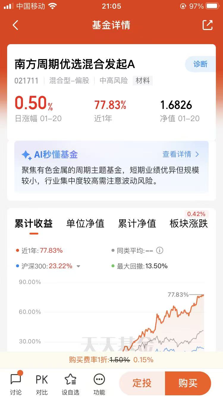 对咱们普通投资者来说,其实可以把这两只基搭配着买。用南方红利低波 50ETF 联接 A 打底,保证资产的基本盘,再拿一小部分钱买南方周期优选,去搏周期行情的收益。这样既不会因为全仓周期基而担惊受怕,也不会错过可能的上涨机会。另外提一嘴,南方周期优选的 C 类份额挺友好的,没有申购费,持有满 7 天还免赎回费,短期想试试水的话,选 C 类挺划算。
