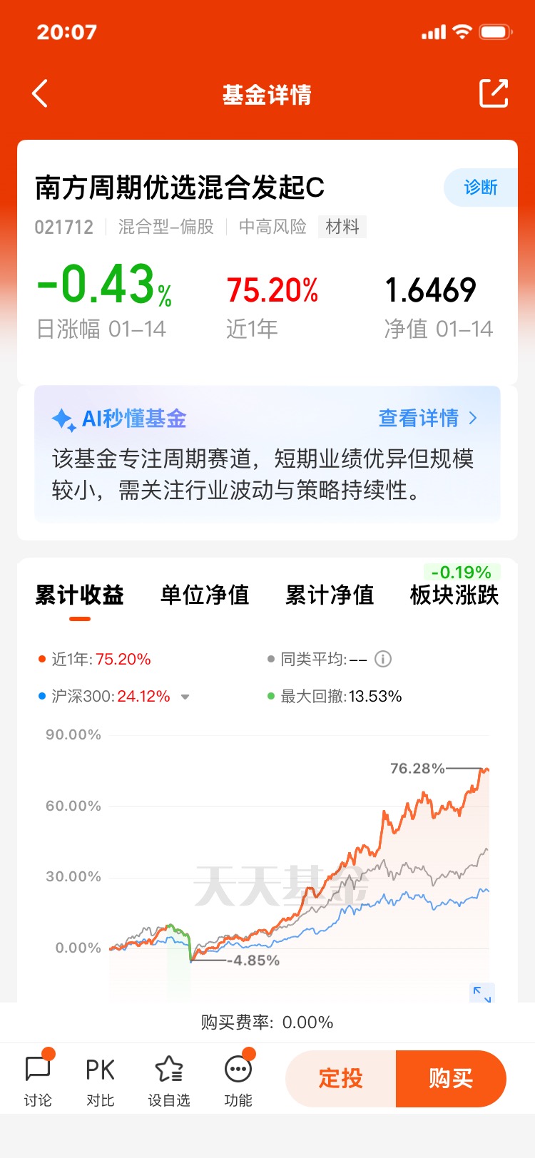 作为个人投资者,我们研究周期、判断方向,最终还是要落到具体的投资工具上。直接买卖大宗商品期货门槛高、风险大,而通过基金来布局,由专业基金经理来执行行业配置和个股精选,对于我们来说是更现实的选择。在我关注的相关产品中,$南方周期优选混合发起C$引起了我的兴趣。从我一个普通投资者的视角分析,它的投资机会可能体现在以下几个方面: