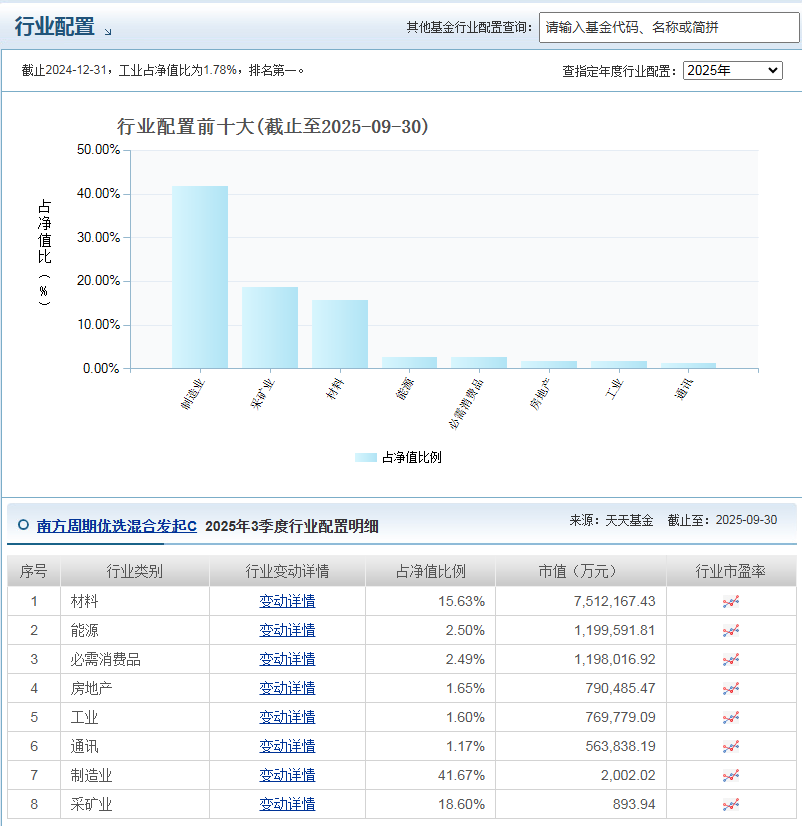 基金股票资产占比 82.49%,集中布局供需格局改善的周期细分赛道,这类板块在经济扩张期弹性较大,净值反弹动能强劲(如2025 年三季度单季涨幅38.11%,远超同类平均21.93%)。同时持仓估值偏低,结合 2026 年中美经济政策共振、“十五五” 规划带来的投资红利,具备较高的长期配置性价比。