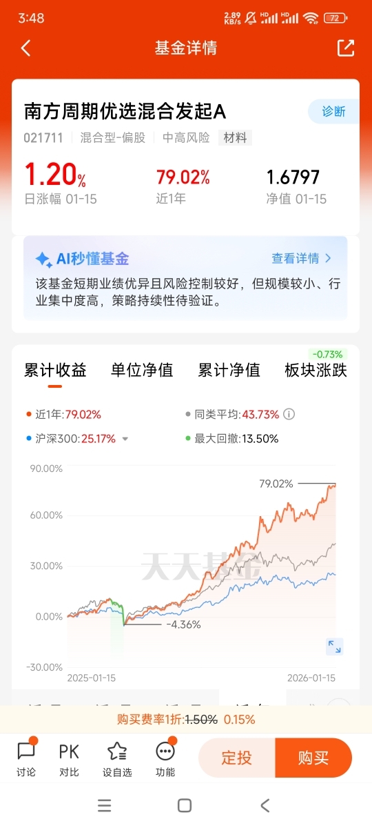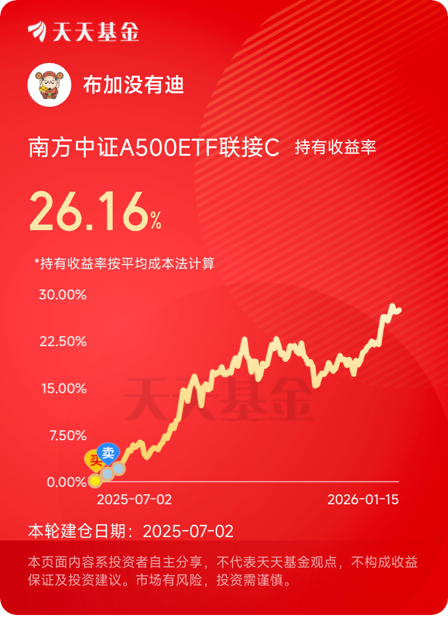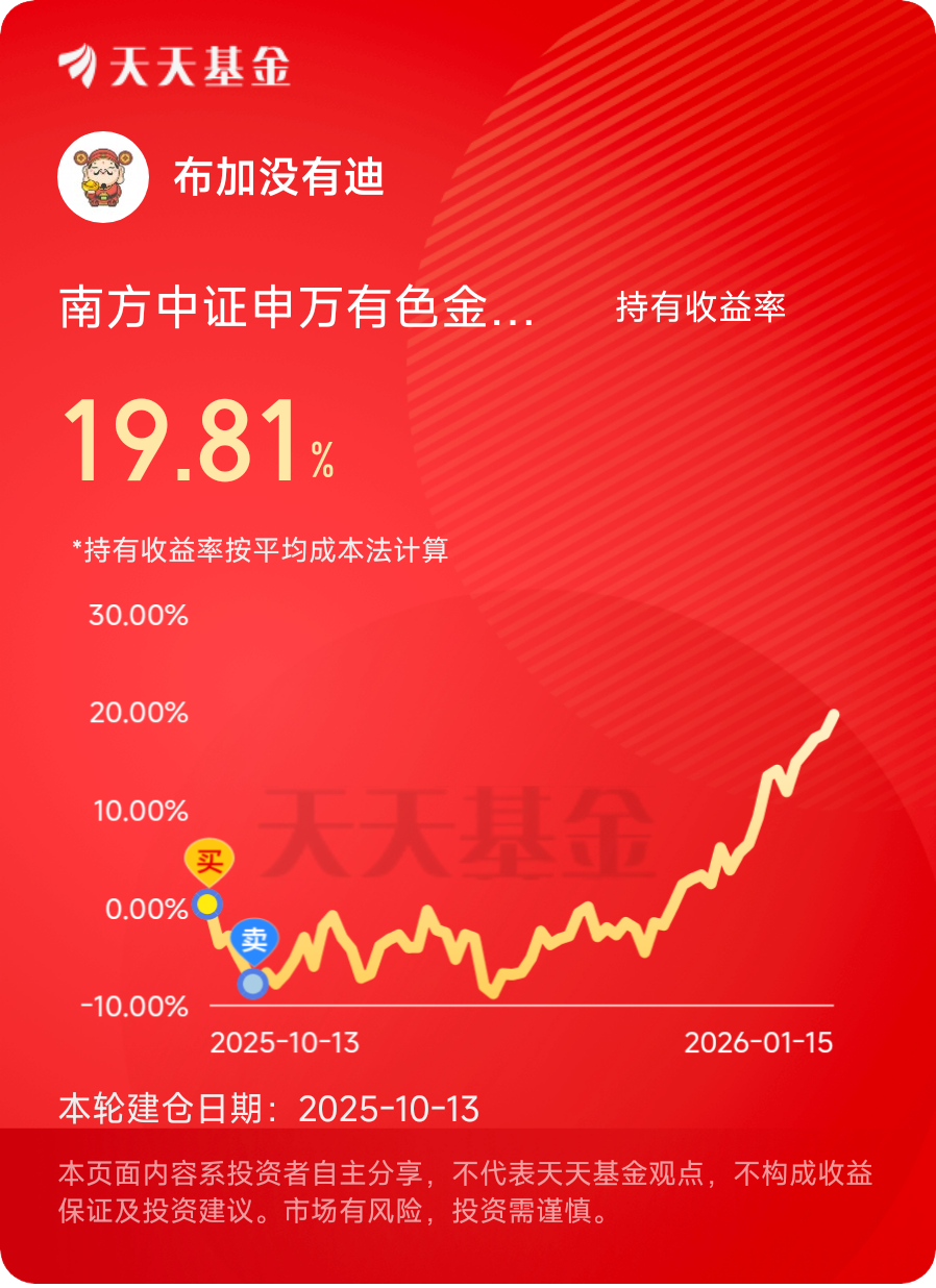 基于以上分析,我计划将南方周期优选混合发起C作为周期板块的核心配置标的,采用“核心仓位长期持有+定投加仓”的策略,在周期波动中坚定布局。我坚信,周期投资的黄金机遇已然来临,而南方周期优选混合发起C,正是把握这一机遇的优质利器。在时间的沉淀与周期的轮动中,这款基金必将为投资者带来可观的长期回报,而积极配置它,无疑是顺应市场规律、掘金价值蓝海的明智之举。@南方基金 #晒收益#