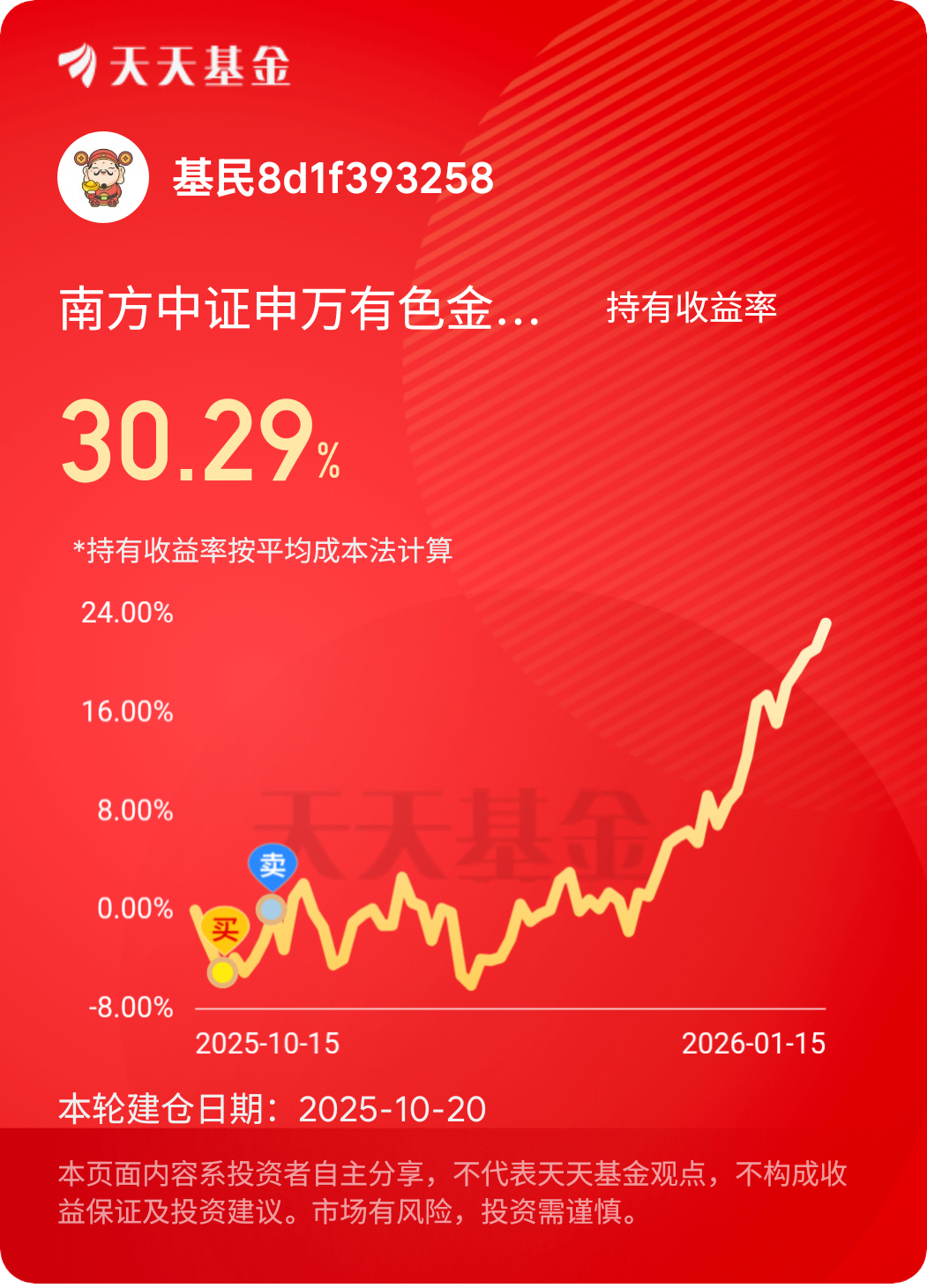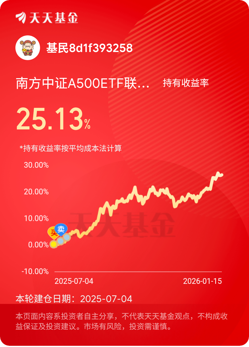 投资是一场漫长的修行,与靠谱的伙伴同行,方能行稳致远。我坚信,选择南方周期优选C,坚持长期定投,我们终将在周期的浪潮中,收获时间的馈赠与价值的成长。@南方基金 #晒收益#
