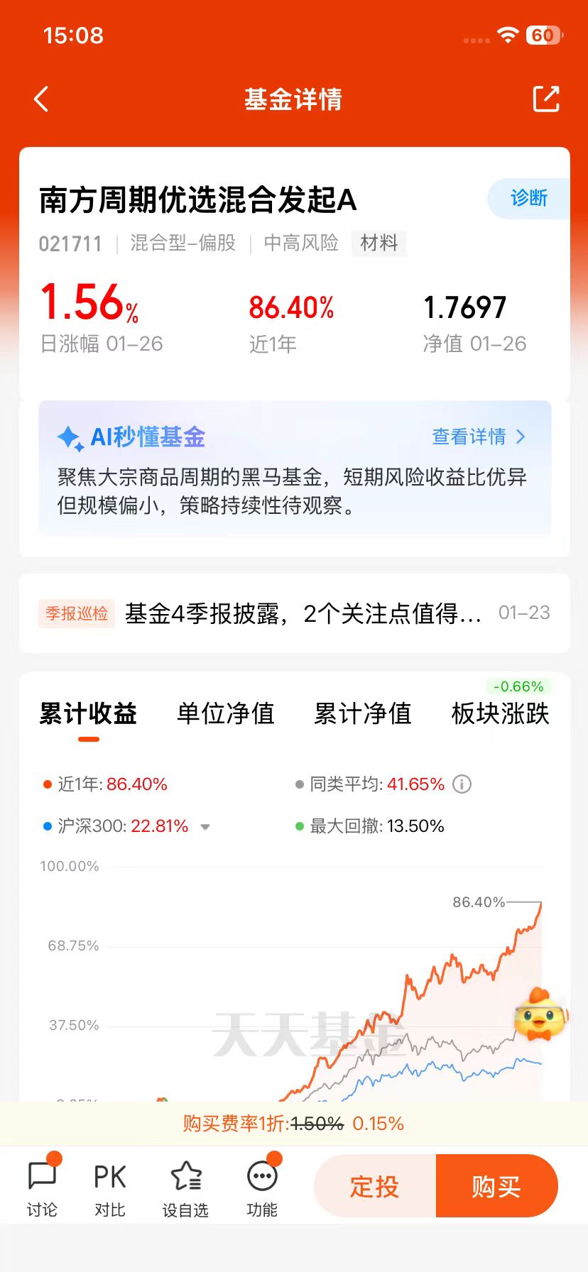 精准的周期投资策略:基金以"周期视角"为核心,通过判断经济周期阶段,结合宏观政策、行业景气度数据,精选景气上行的周期子行业布局。