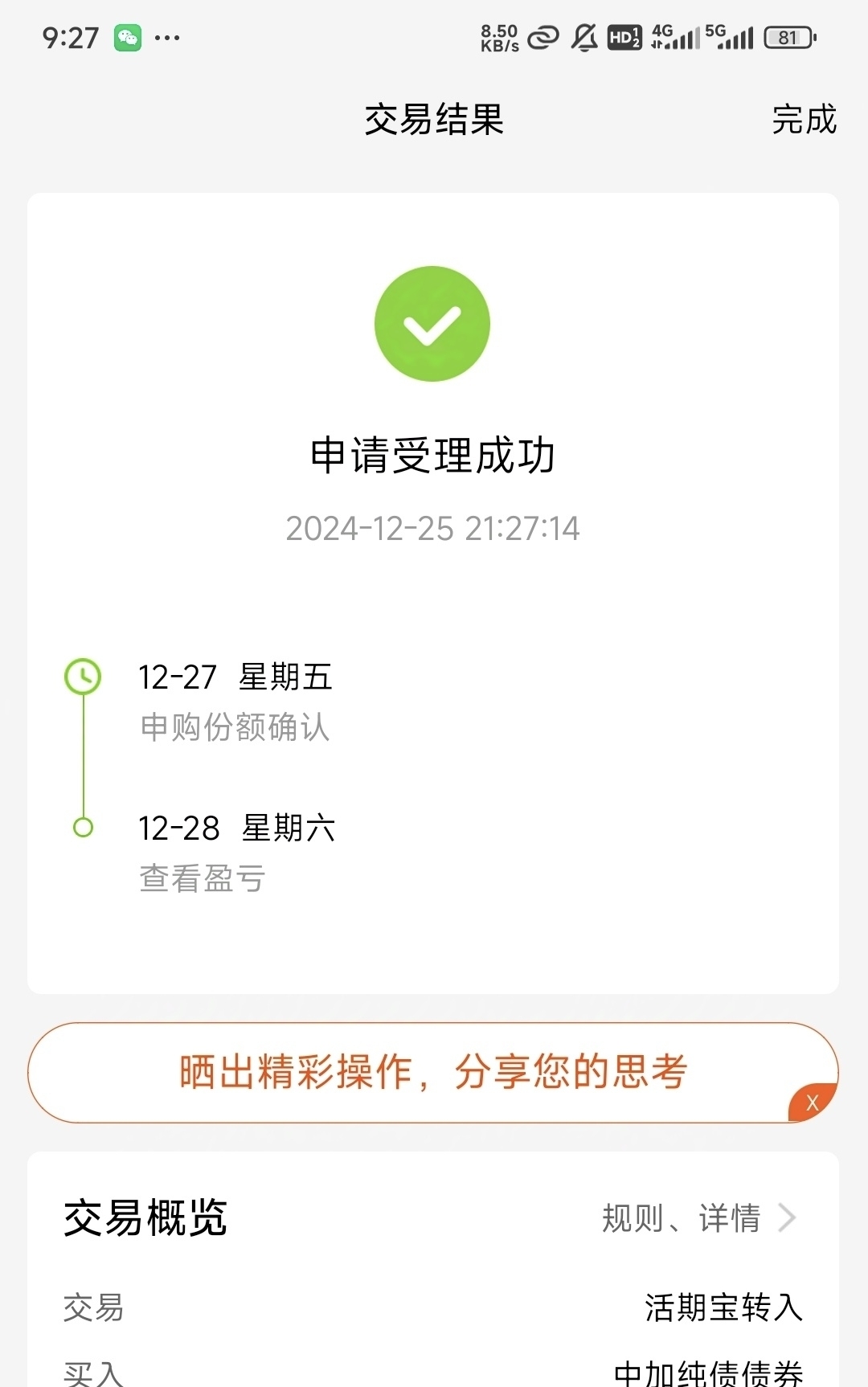 涨涨跌跌每天都在坐过山车,投资还是要循序渐进,不能太着急,股债兼顾才最优解,我买的$中加纯债债券$ ,波动小,近一年还涨了4.34%呢
