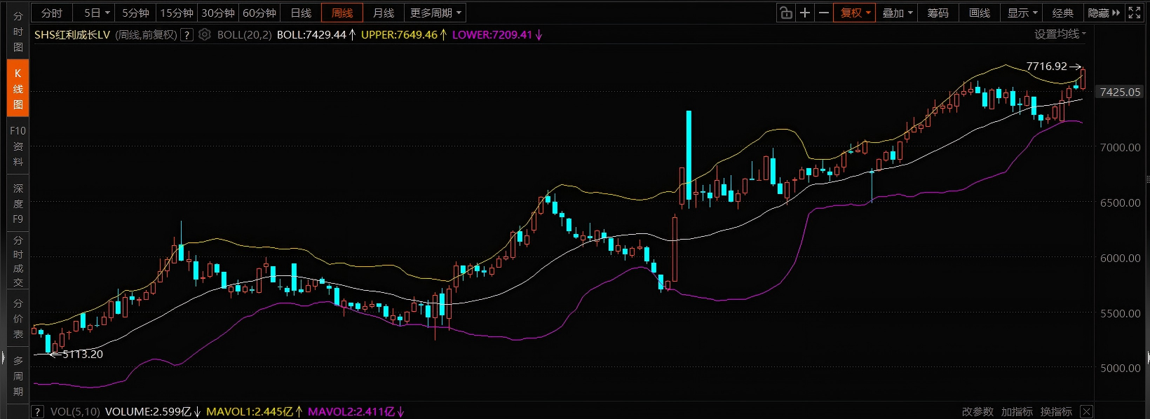 本周SHS红利成长LV指数周K涨跌幅+2.35%,投资产品$景顺长城沪港深红利成长低波指数E$ 周涨跌幅+2.18%。