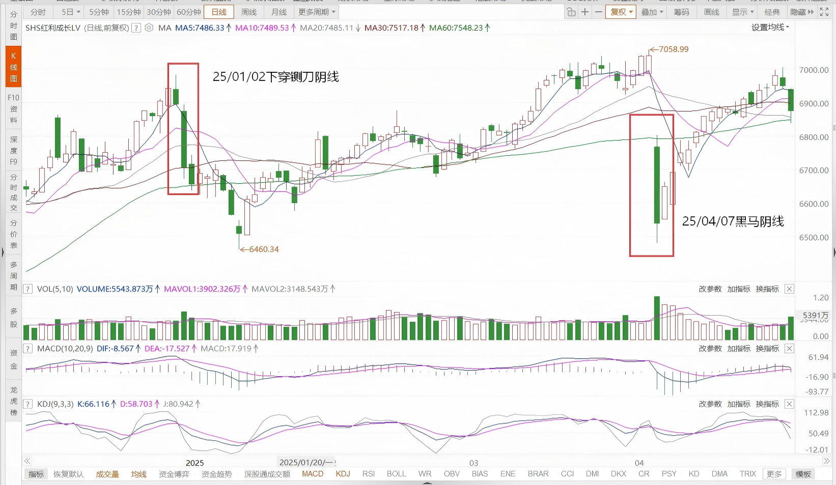 假期回顾过去一年的红利投资,发现去年有两个时间点的大幅亏损是无论如何也躲不过去的,不管采用何种投资方法。一个是1月2日的铡刀阴线,另一个是4月7日的黑马线。