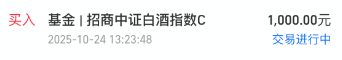 我加仓$招商中证白酒指数(LOF)C(OTCFUND|012414)$1000元,跟踪的白酒指数这会看跌1.9%左右,半年线支撑给跌破了,不过问题不大,毕竟整体位置比较低,我仓位也不多,今天继续分批低吸了!
