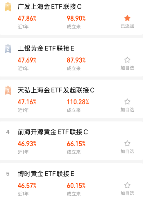 目前有多家机构预测国际金价有望在2026年突破5000美元/盎司关口,换算人民币每克约1200元左右,这样看还有不少空间,未来1-2年支撑黄金上涨的核心逻辑依然坚实;而且目前地缘局势和国际关系不断反复,黄金的避险属性长期存在,我觉得有调整可以加仓,广发上海金是低费率黄金指基TPO1,近1年已涨47,86%,可做为首选。$广发上海金ETF联接A(OTCFUND|008986)$