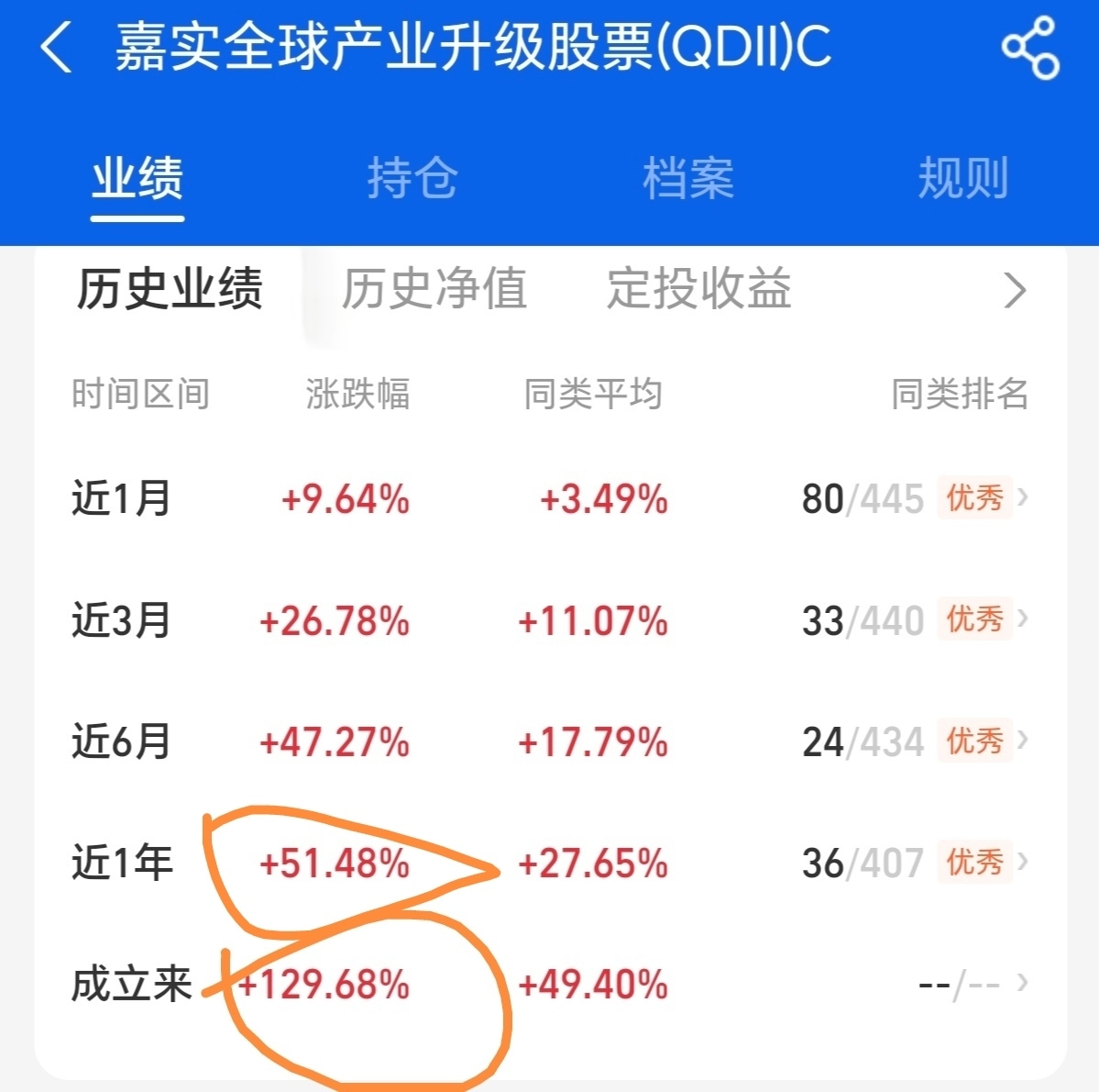 美股纳斯达克期货小绿0.3%,最近美股科技行情还是不错的,发现嘉实全球产业升级股