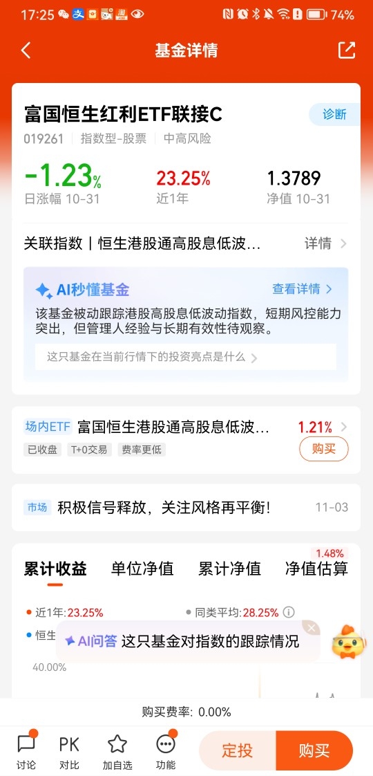 我同时拿着黄金和富国恒生红利ETF联接C这两只,一个避险一个稳赚富国这只近1个月