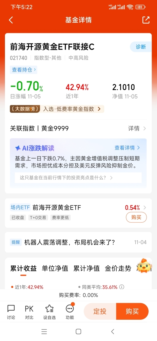 前海开源“全家桶”里面我最爱的是前海开源黄金ETF联接C(021740),下面我