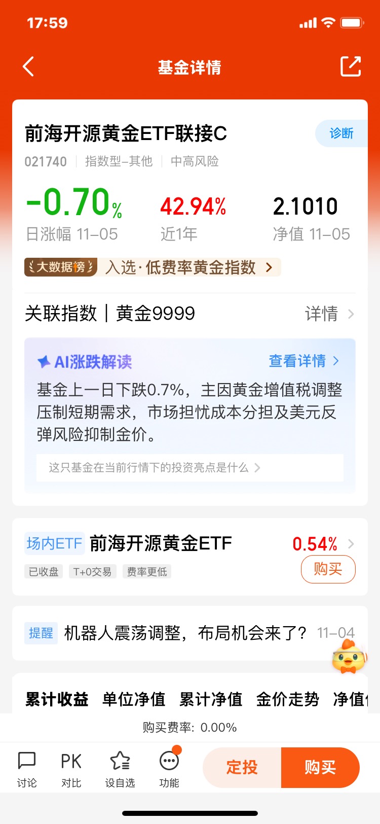 对我而言,选择$前海开源黄金ETF联接C(OTCFUND|021740)$,不仅仅是看中黄金本身的行情,更是看中它作为指数工具的便捷性和可靠性。它让我在布局黄金时,无需纠结于个股或 timing问题,而是通过一篮子资产实现分散投资。结合我长期持有沪深300指数基金的经验,我发现指数化投资最大的魅力在于“淡化择时、聚焦长期”。毕竟,作为职场妈妈,我的时间和精力有限,更需要这种“省心又有效”的工具。