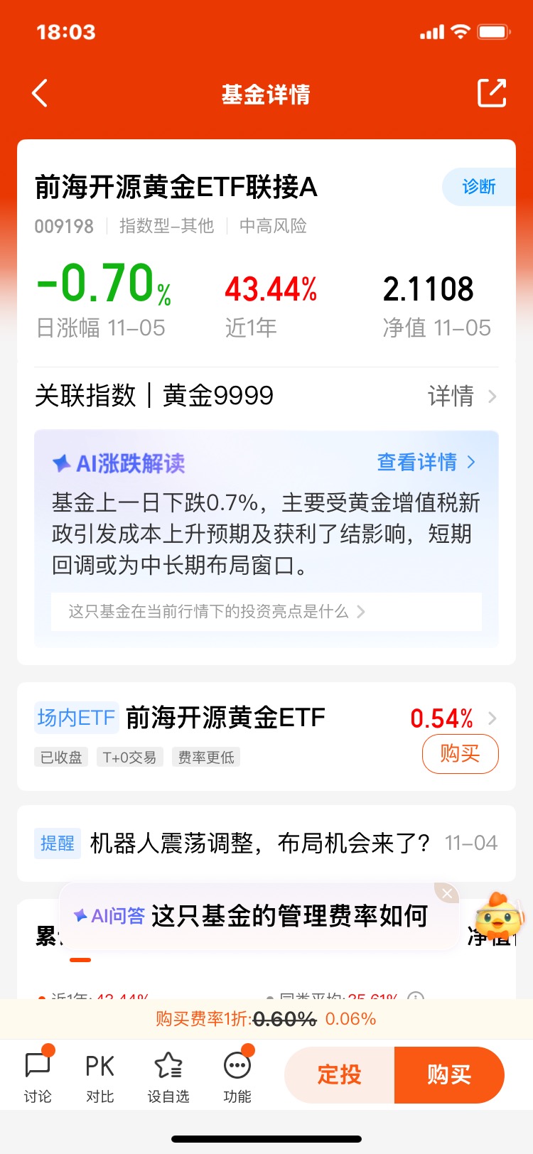 在这些产品中,我特别看好$前海开源黄金ETF联接C(OTCFUND|021740)$。作为指数基金,它的投资机会主要体现在几个方面。先说说管理团队和产品支撑。前海开源基金在指数产品领域深耕多年,形成了较为完善的“全家桶”矩阵,从沪深300到行业主题基金,底层投研体系成熟。这种平台优势为黄金ETF的运作提供了坚实基础,比如在流动性管理、风险控制上更有经验。再看基金经理梁溥森和孔芳,两位均有扎实的指数投研背景。梁溥森长期跟踪大宗商品和ETF领域,对黄金市场的周期特性理解较深;孔芳则在资产配置和风险建模方面有丰富经验。这种组合让基金在跟踪黄金价格的同时,能更灵活地应对市场变化。