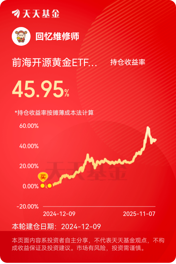 综上所述,我提前布局了前海开源黄金ETF联接C(021740),因为梁溥森与孔芳这两位基金经理的投资经验相当丰富。@前海开源基金