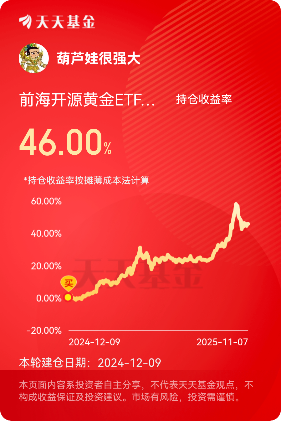 再经过以上认真的思考之后,我持有的是前海开源黄金ETF联接C(021740),因为它给我带来了稳稳的幸福。@前海开源基金