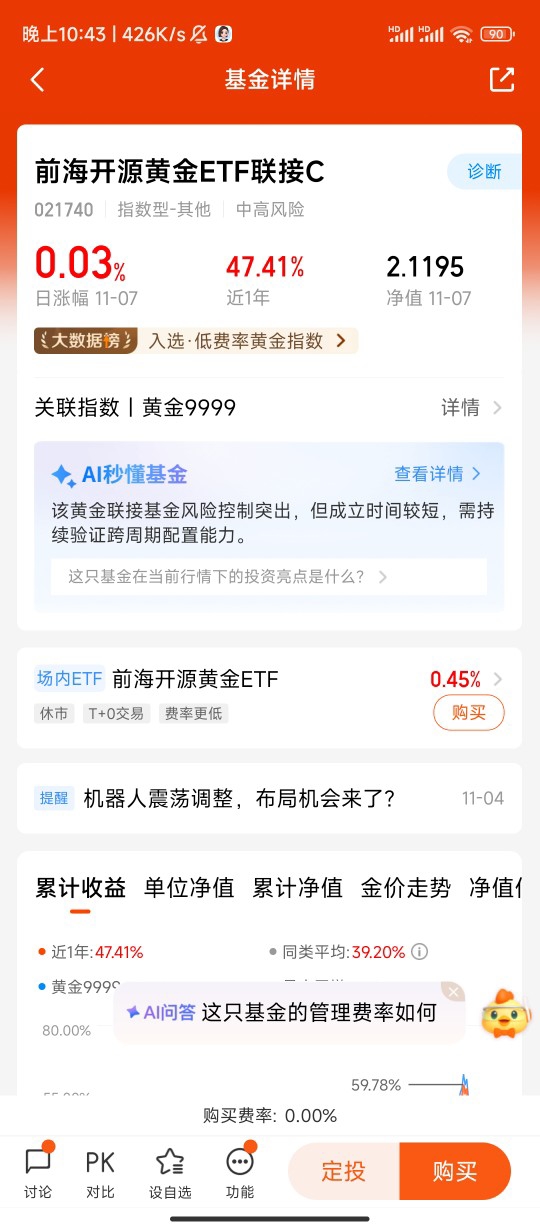 #低位定投买黄金# $前海开源黄金ETF联接C$