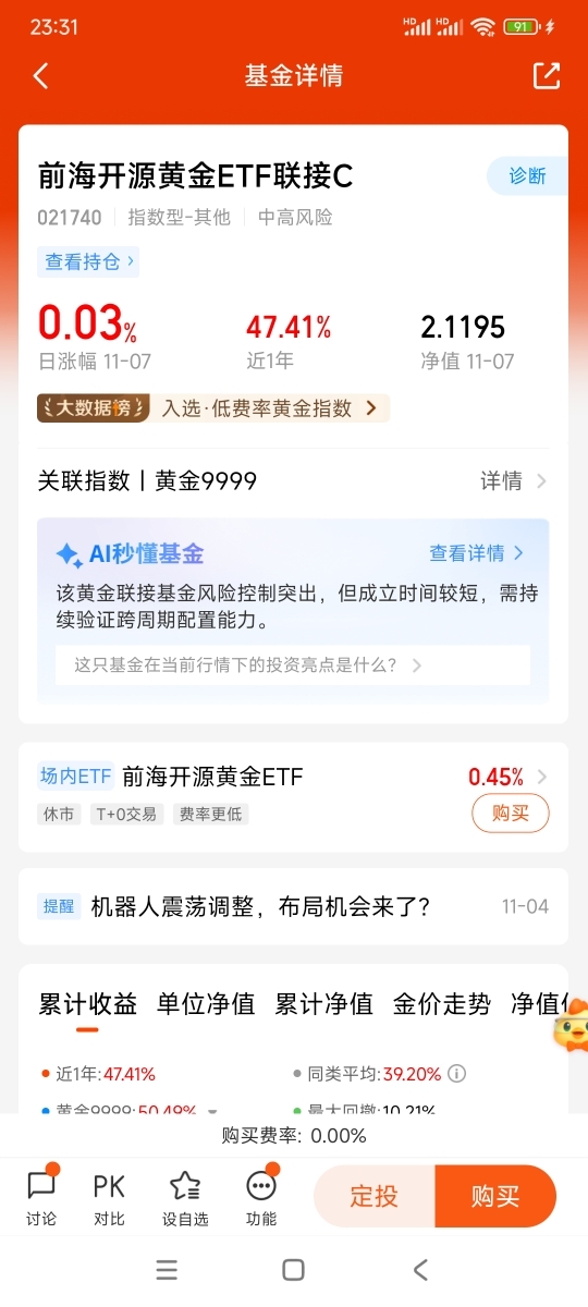 全家桶大PK!我的心头爱基金是$前海开源黄金ETF联接C$,打开基金账户,看着$