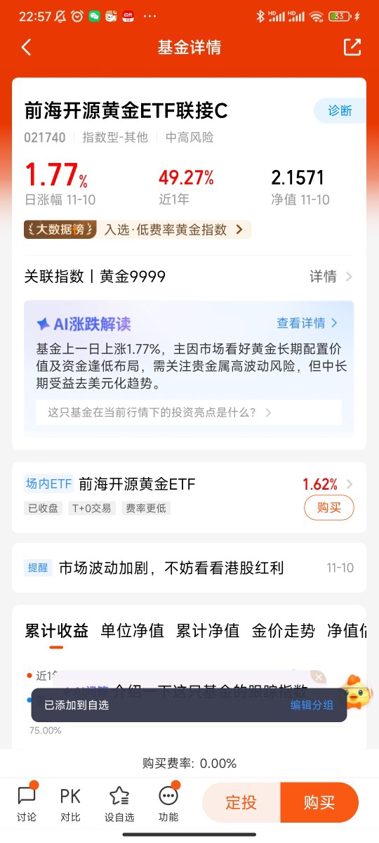 该基金1手起投、费率低廉,紧密跟踪金价走势,无需直接打理实物黄金。我的思路是将其作为组合“压舱石”,配置5%-15%仓位分散股债波动风险。采用定投策略摊薄高位成本,忽略短期震荡,聚焦长期增值逻辑。在市场波动加剧的当下,它既能抵御财富缩水,又能分享行业红利,是稳健型投资者的务实选择。@前海开源基金 @洒脱的魏泓莎