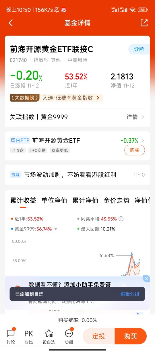 黄金税收新政落地,标准化黄金投资迎来风口,前海开源黄金ETF联接C(021740)成为配置优选。该基金紧密跟踪上海黄金交易所现货金价,10元起投、费率亲民,免去实物黄金的保管烦恼。