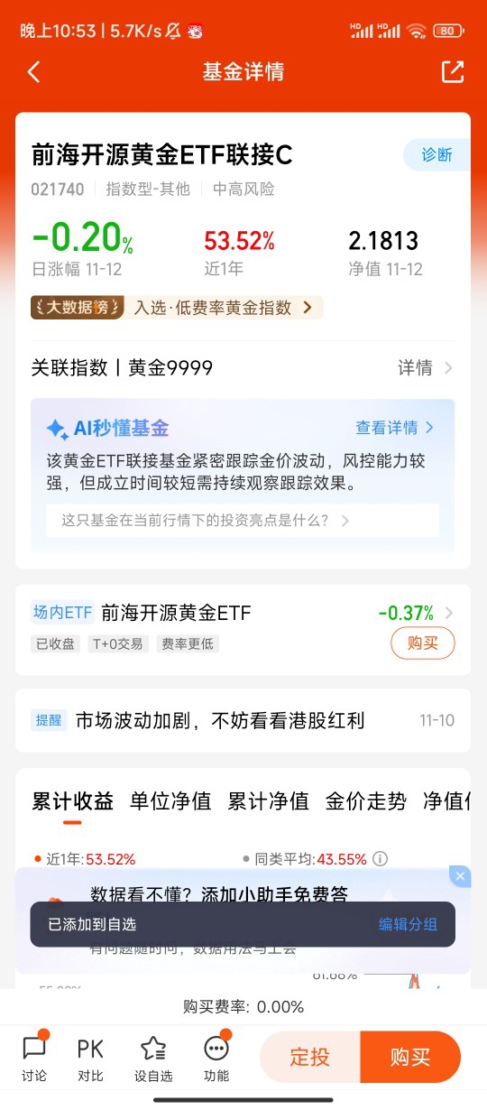 想沾黄金的光又怕麻烦?前海开源黄金ETF联接C挺合适。它不用买实物黄金,不用操心存储,几块钱就能投,手机上操作就行。