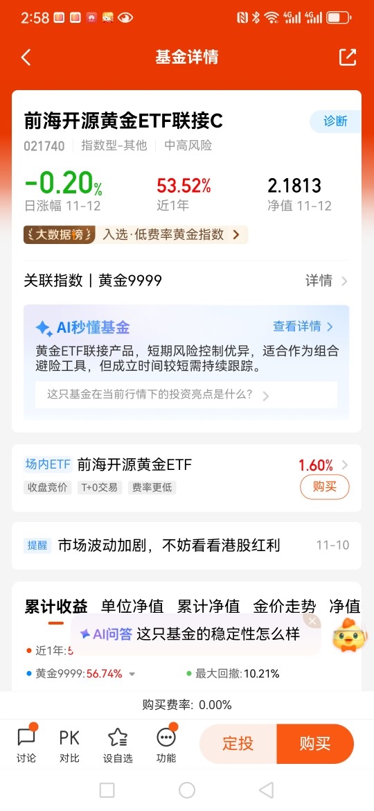 $前海开源黄金ETF联接C$今年以来,黄金价格屡创新高,截至10月已实现超过30