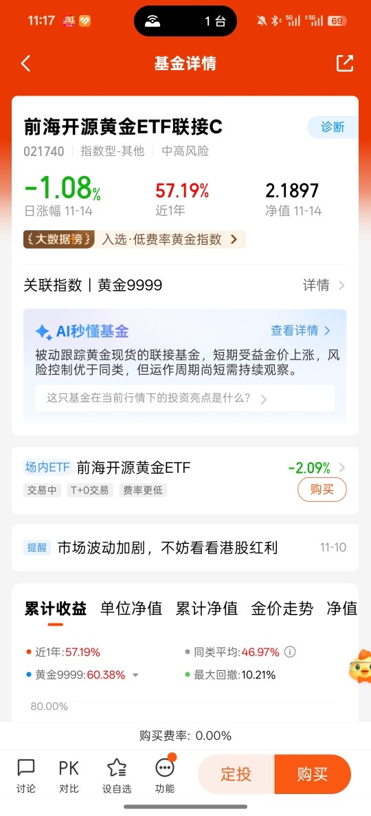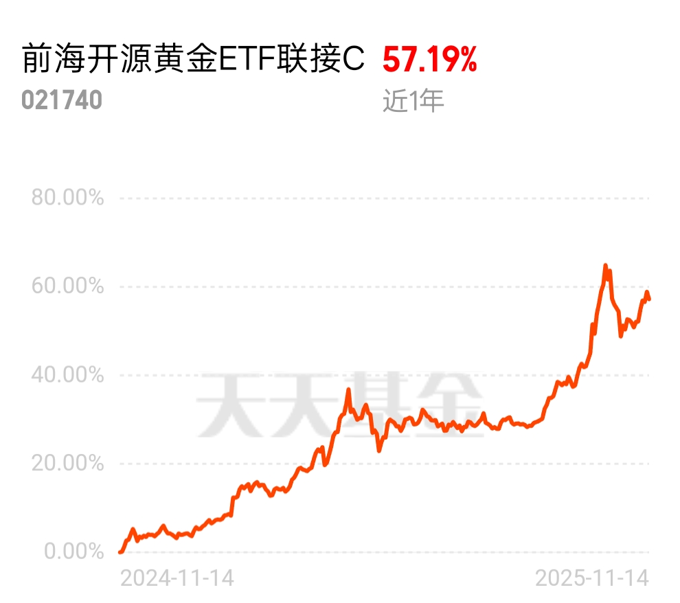 是场外布局黄金的优质选择,凭借多重核心优势成为不少投资者的配置优选。这只中风险基金聚焦黄金资产,90%以上资产投向前海开源黄金ETF,紧密跟踪上海黄金交易所Au99.99现货价格,在全球经济波动、通胀压力下,能凭借黄金的避险属性为资产组合提供抗风险对冲。业绩表现上,其长期收益亮眼,近12个月涨幅达57.19%,成立以来收益率67.09%,年化收益率48.02%,跟踪基准效果稳定。费率与门槛方面更是亲民,作为C类基金免申购费,仅计提销售服务费,适合中短期持有,且10元起投的低门槛,让普通投资者无需高额资金就能参与黄金投资。此外,基金由从业超4年的梁溥森、孔芳共同管理,专业团队的运作经验为基金稳健运行保驾护航,无论是想分散风险还是把握黄金行情,这只基金都是便捷且靠谱的选择。@前海开源基金