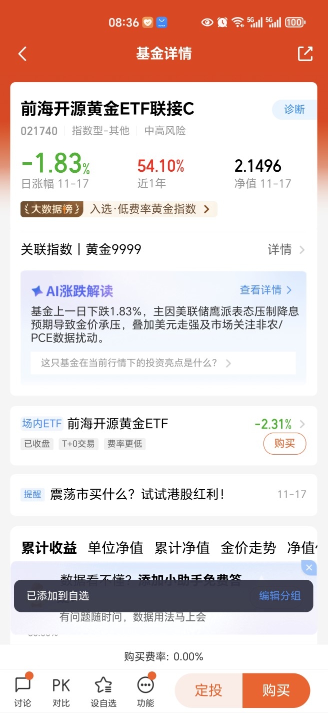 我最爱前海开源全家桶的前海开源黄金ETF联接C基金。前海开源黄金ETF联接C(0