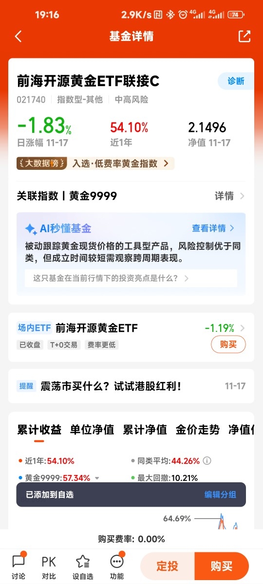 但我也发现,黄金不适合当核心资产。它不创造现金流,也不长期上涨,更多是对冲风险。所以我一般仓位保持在10%以内,用来平滑曲线。整体感觉是:行情好时它不拖后腿,行情差时它能兜底一点。买黄金基金就是这样,用小钱买心态,用仓位换稳定。