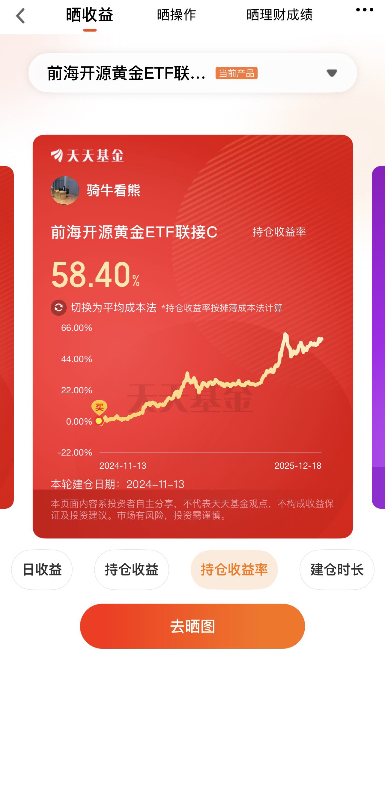 如果你不会买黄金,又没有实际投资经验,可以选择ETF基金进行操作,起码不会“翻船”,有基金经理给你掌舵“不用操心”。骑牛看熊持有并看好前海开源黄金ETF联接C(021740),死守400天并没有辜负我,它适合作为投资组合底仓,核心源于其依托黄金的避险抗通胀属性、优异的业绩表现、灵活的费率设计等多重优势,能为组合起到稳健压舱石的作用,具体理由如下: