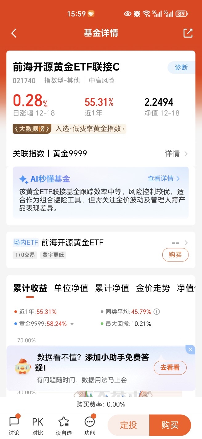 我选前海开源黄金ETF联接C(021740)作底仓。