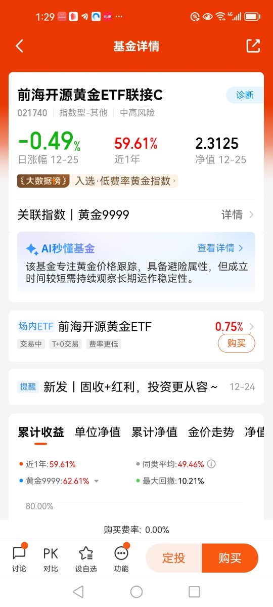 #底仓资产大PK#展望后市,非常看好中长期黄金上涨行情。因此,我选择$前海开源黄金ETF联接C$作为底仓资产。目前COMEX黄金已站上4500美元/盎司,并成功突破前期阶段性高点。