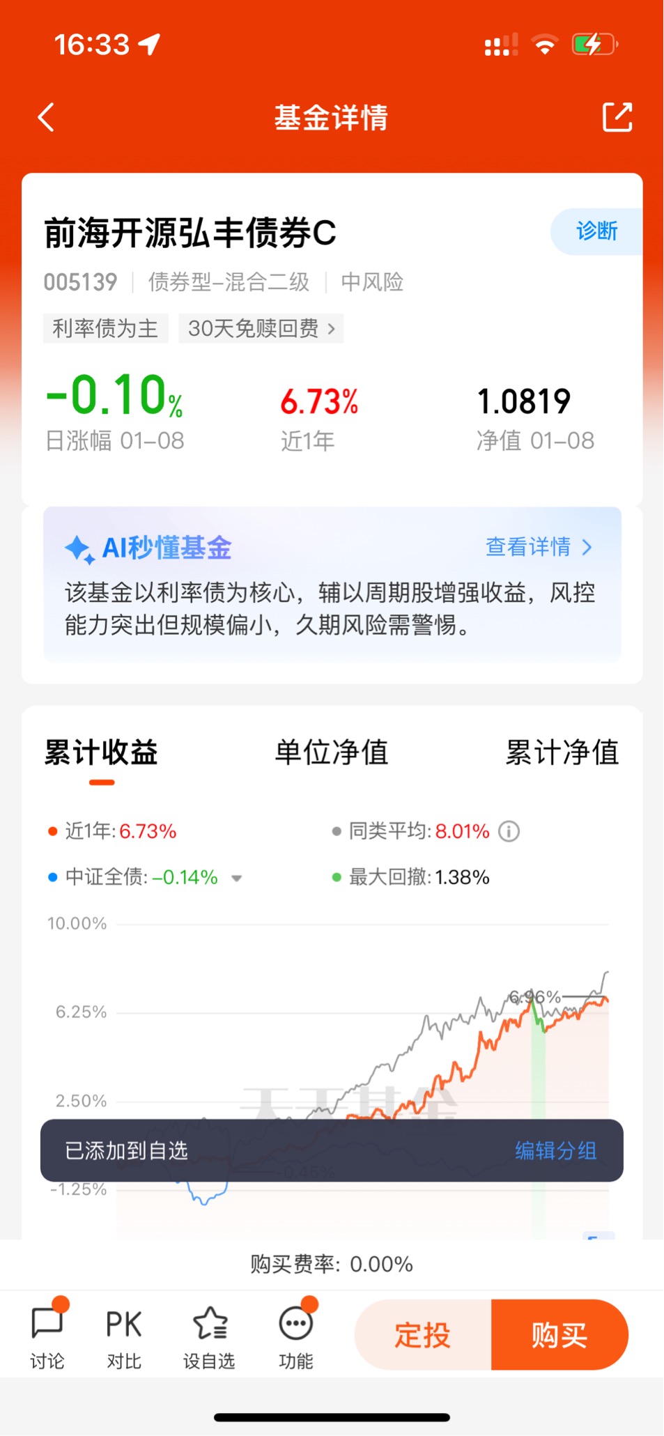 黄金配15%仓位就好了,底仓还是得看固收+,固收+红利策略,今年稳赚的呀$前海开源弘丰债券C$