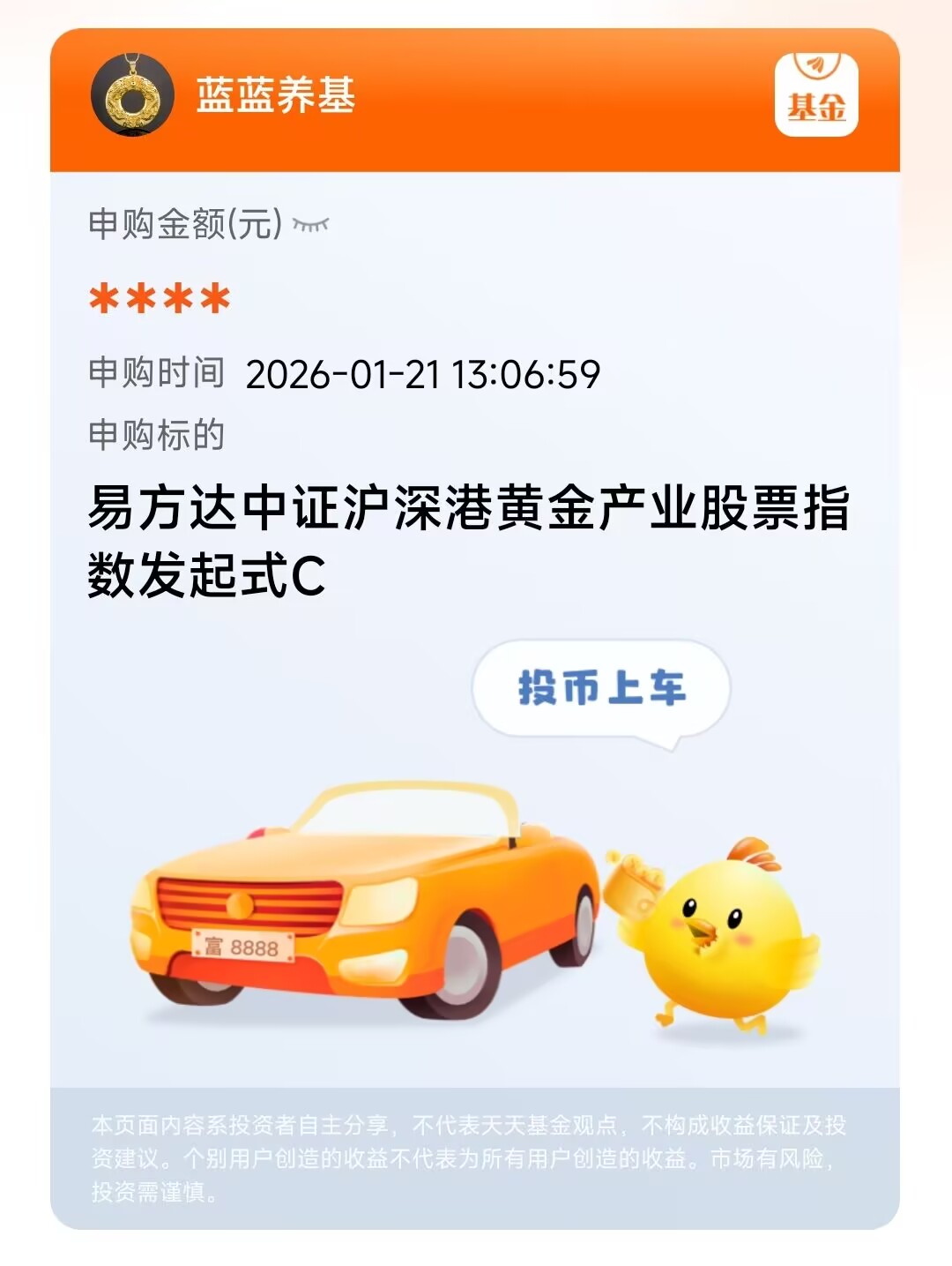 羡慕了,黄金股今日迎来大涨,有色板块也跟着有亮眼表现。黄金股的行情和金价趋势基本同步,既不会提前启动,也不会提早收尾。易方达黄金股 C 近期涨幅很可观,长期配置价值依旧坚挺。想稳稳布局的话可以逢低加仓,要是想博取更高收益,入手黄金股就是个不错的选择,妥妥跟上这波行情节奏!