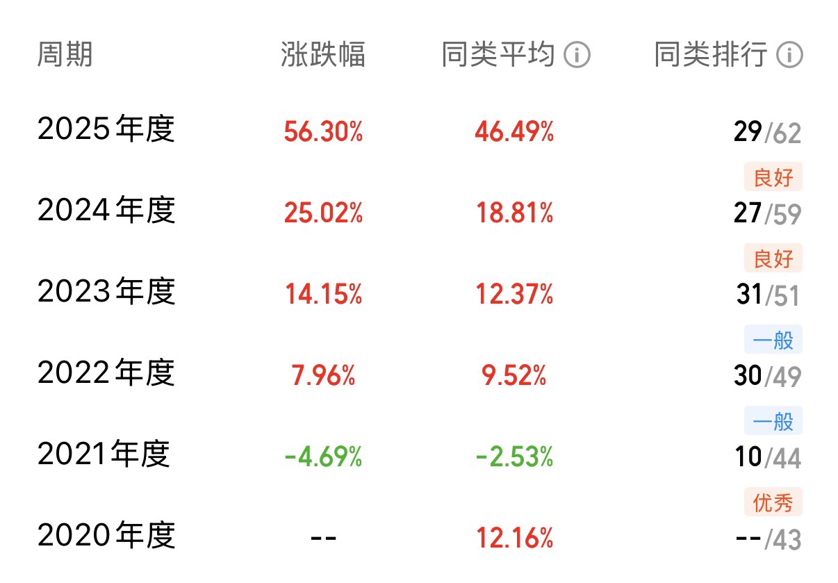 没有太多犹豫,我立刻把之前每月买金豆的习惯,无缝切换成了定投这只基金。虽然错过了它最早成立的2020年,但好在没有错过更久。我的定投金额,也随着金价从当初的每克六百多元,一路跟到了现在1000元。回头看看,这只基金在2024年的表现也确实强劲,年度净值增长率超过了25%。我不再需要担心小偷,也不再需要寻找靠谱的回收商。市场波动时,我看到的只是一个数字的变化,心态反而比握着实物时更平稳。