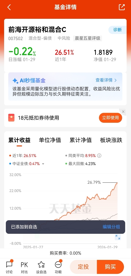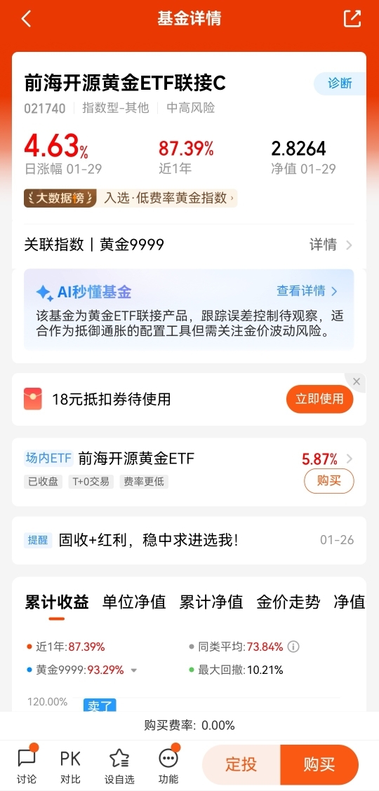 #底仓资产大PK# 就目前的市场格局之下,底仓资产我会选择黄金$前海开源黄金ETF联接C$ ,24和25年的黄金本身就引人注目,26年开年这不到一个月的时间,更是引爆市场,黄金变得不像是避险资产了,但它的增幅确确实实源于避险情绪。