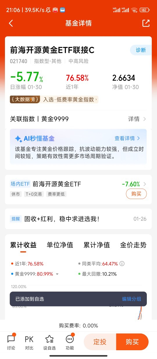 我坚定选择前海开源黄金ETF联接C(021740)作为核心底仓,核心逻辑是黄金兼具避险、抗通胀与资产对冲三重价值,而这只基金以低成本、高跟踪精度、灵活交易的优势,成为普通投资者布局黄金底仓的最优解,适配2026年全球经济与市场的复杂环境。
