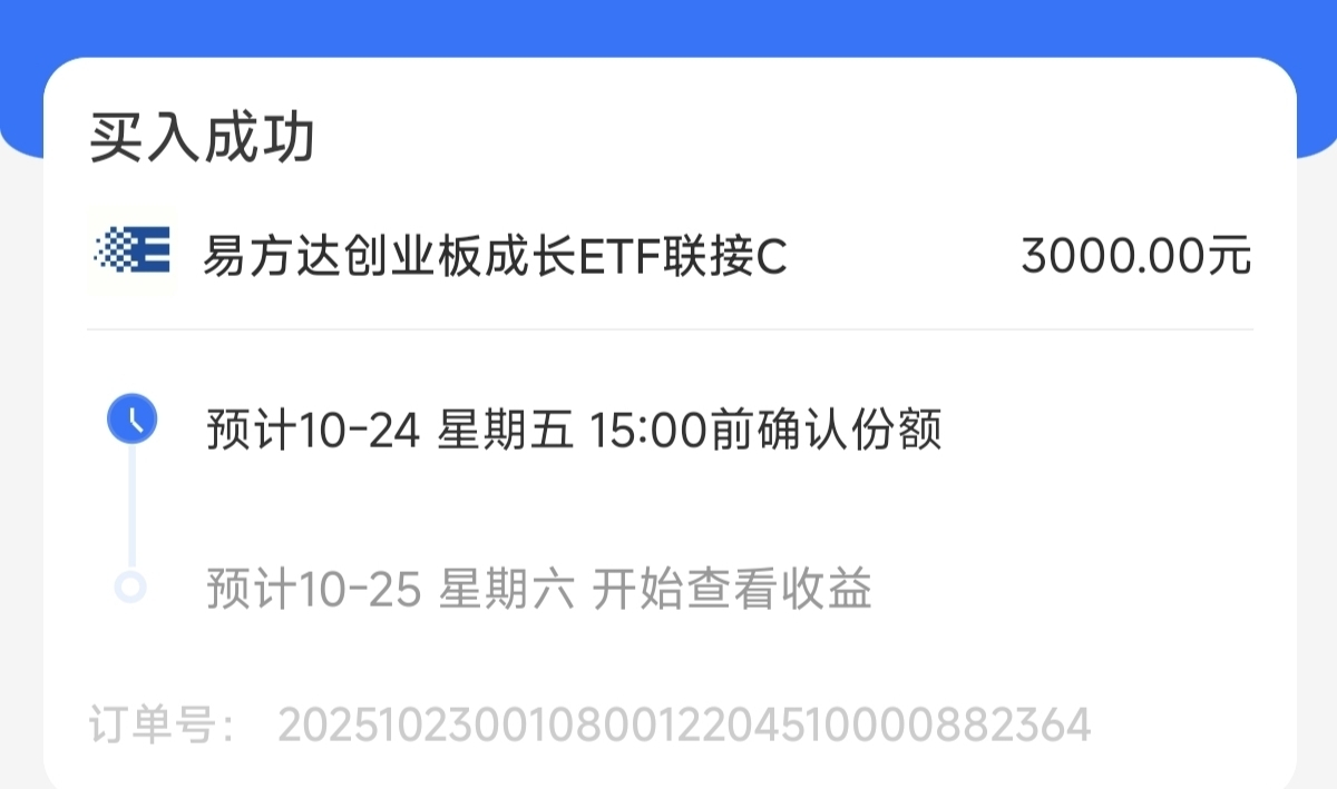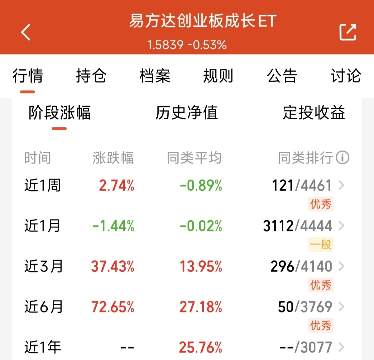 三大指数虽然今天再度调整,可是明显波动的幅度越来越小。短期来看,有可能反弹一触即发。目前我继续看好创业板未来的上涨表现。今天开始布局。$易方达创业板成长ETF联接发起式C$ 聚焦创业板成长的指数基金。对比创业板指数来看表现更强。近3月上涨37.43%。近半年上涨了72.65%。稳定跑赢了创业板指数的涨幅。反弹起来的爆发力,值得期待。看好四季度的创新高。
