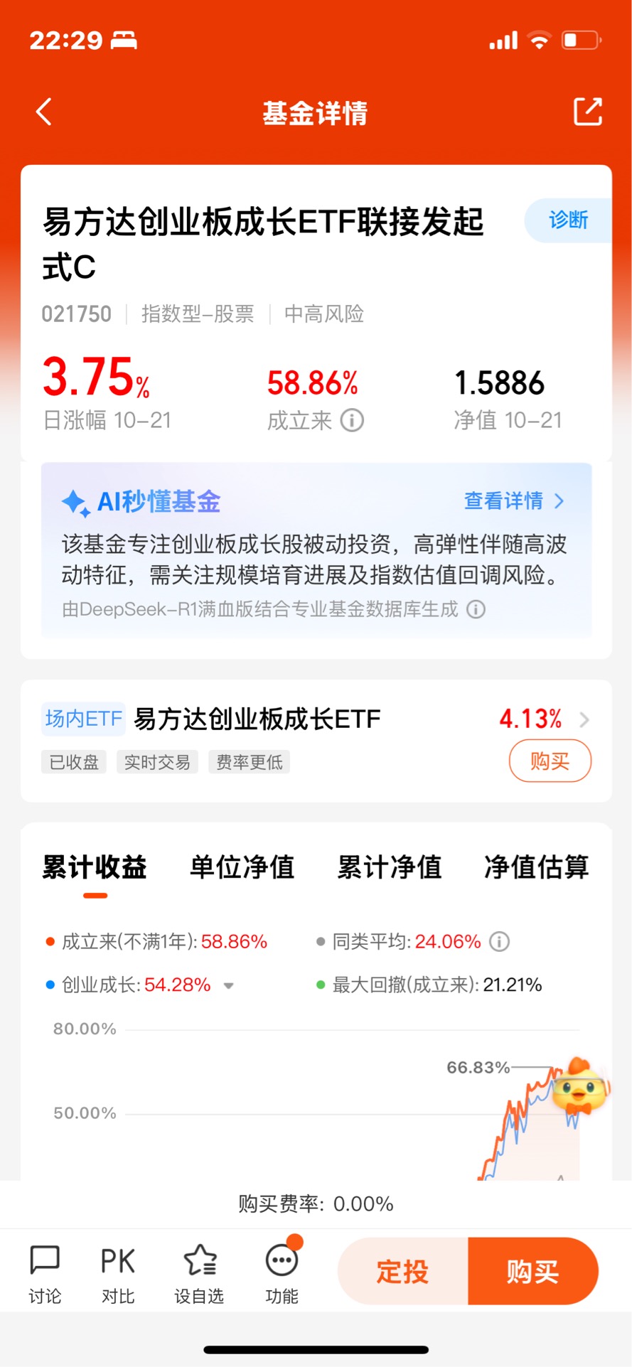$易方达创业板成长ETF联接发起式C$ 今天上涨3.78%真的很强了