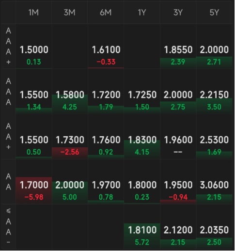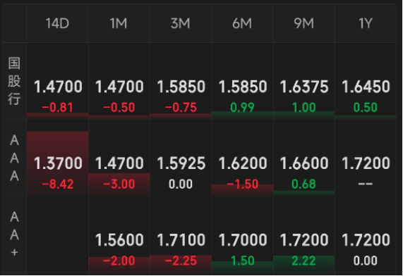 同业存单:多云,涨跌互现。