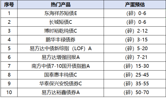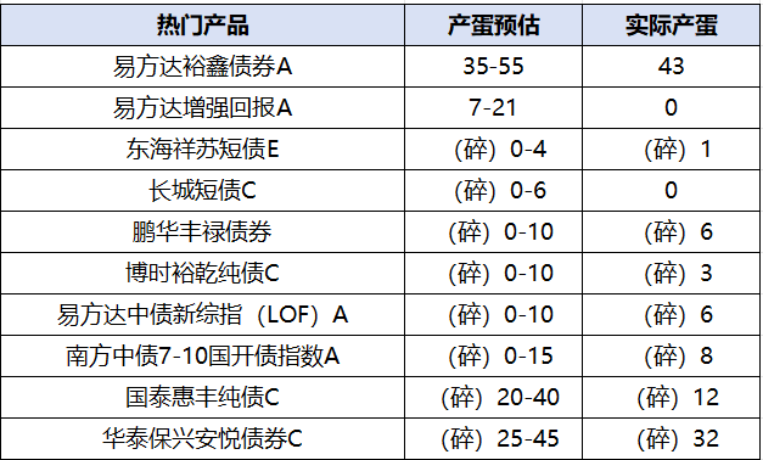 热门产品产蛋预估:(根据16:00行情预测,仅供参考,以实际产蛋为准)
