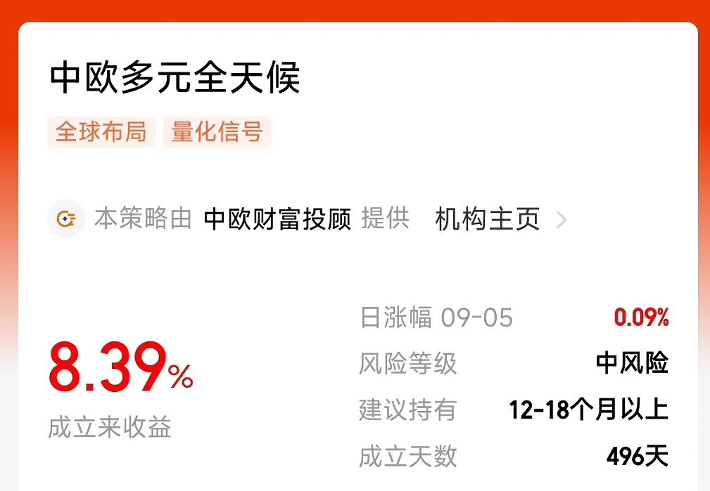 传统固收+策略大多以国内债券为主,配合少量权益增强。而中欧多元全天候的“增强”部分视野更广,涵盖美股、港股、大宗商品、美元债等