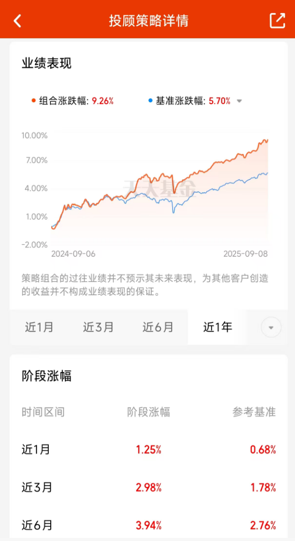 认识中欧多元全天候这个组合后,我对“稳”字有了新理解。它的“稳”不是靠保守,而是通过更精细化的分散和动态管理来实现。组合借助“多资产+多策略+尾部风险控制”三管齐下的管理策略,旨在在不同经济周期与市场环境下,都能让策略保持相对稳定的表现。这种思路下,近一年取得了接近9%的收益,最大回撤仅2.02%,波动率2.7%左右,体验确实不错。#万亿美元级“深空经济”概念来了#