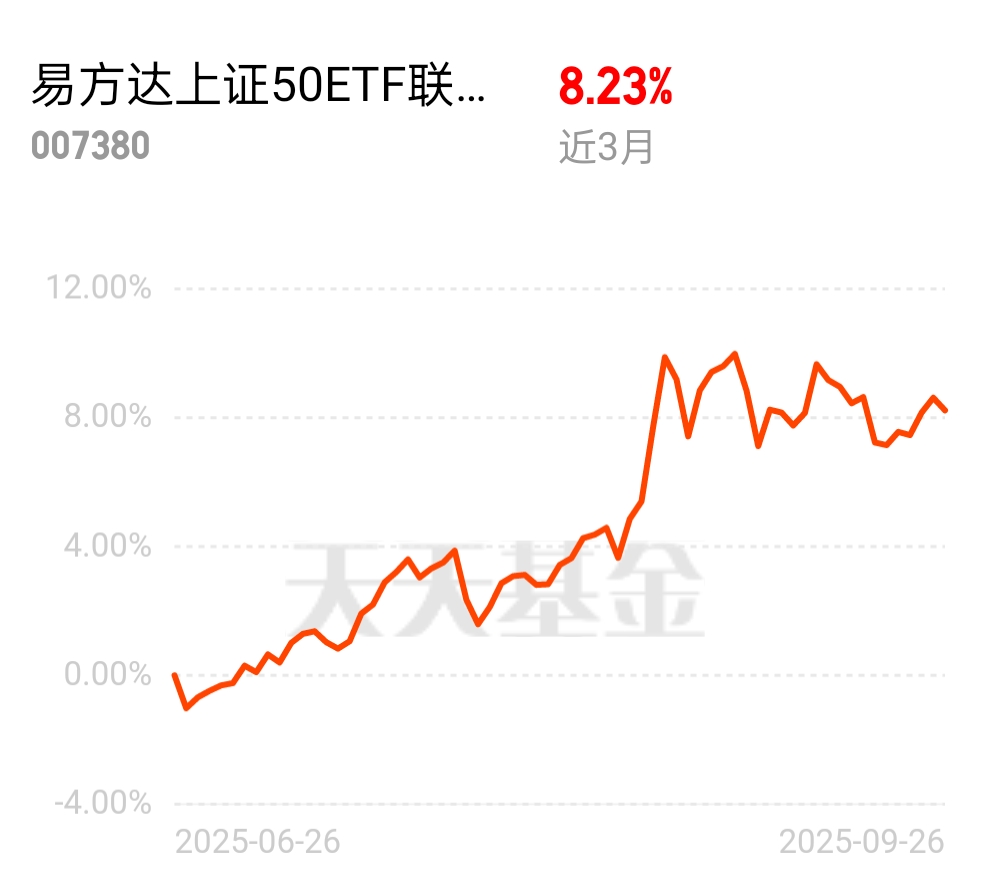 这会儿成长股表现确实好,但高估值的问题得重视,别盲目追高。配些大盘价值平衡持仓,易方达上证50ETF联接C近3个月8.23%,收益靠谱,该上车了。