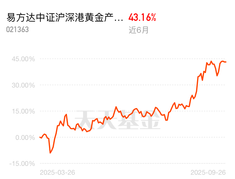 最近黄金价格创了阶段性新高,产业链上的公司业绩也跟着好,行情挡不住。易方达中证沪深港黄金产业股票指数C近1个月15.42%,赶紧上车别错过!$易方达中证沪深港黄金产业股票指数发起式C$