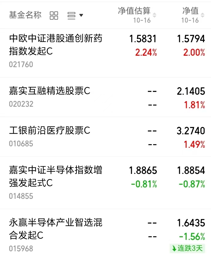 今日 A 股和港股均成板块分化走势,医药板块强势回暖,创新药、医疗设备等细分领域延续反弹趋势,市场对医药赛道信心回升,行情回归信号明确。半导体等前期热门板块回调,资金向低估值复苏赛道切换,医药的行情又回来了呀!看看今天的净值更新表现: