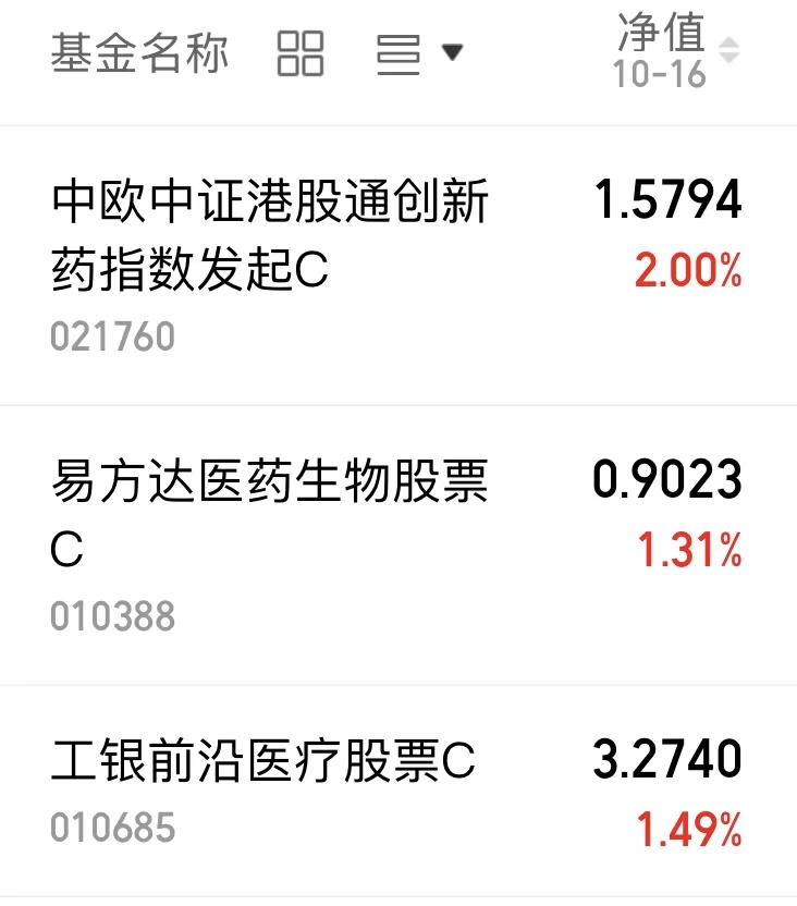 $中欧中证港股通创新药指数发起C(OTCFUND|021760)$今天上涨2%