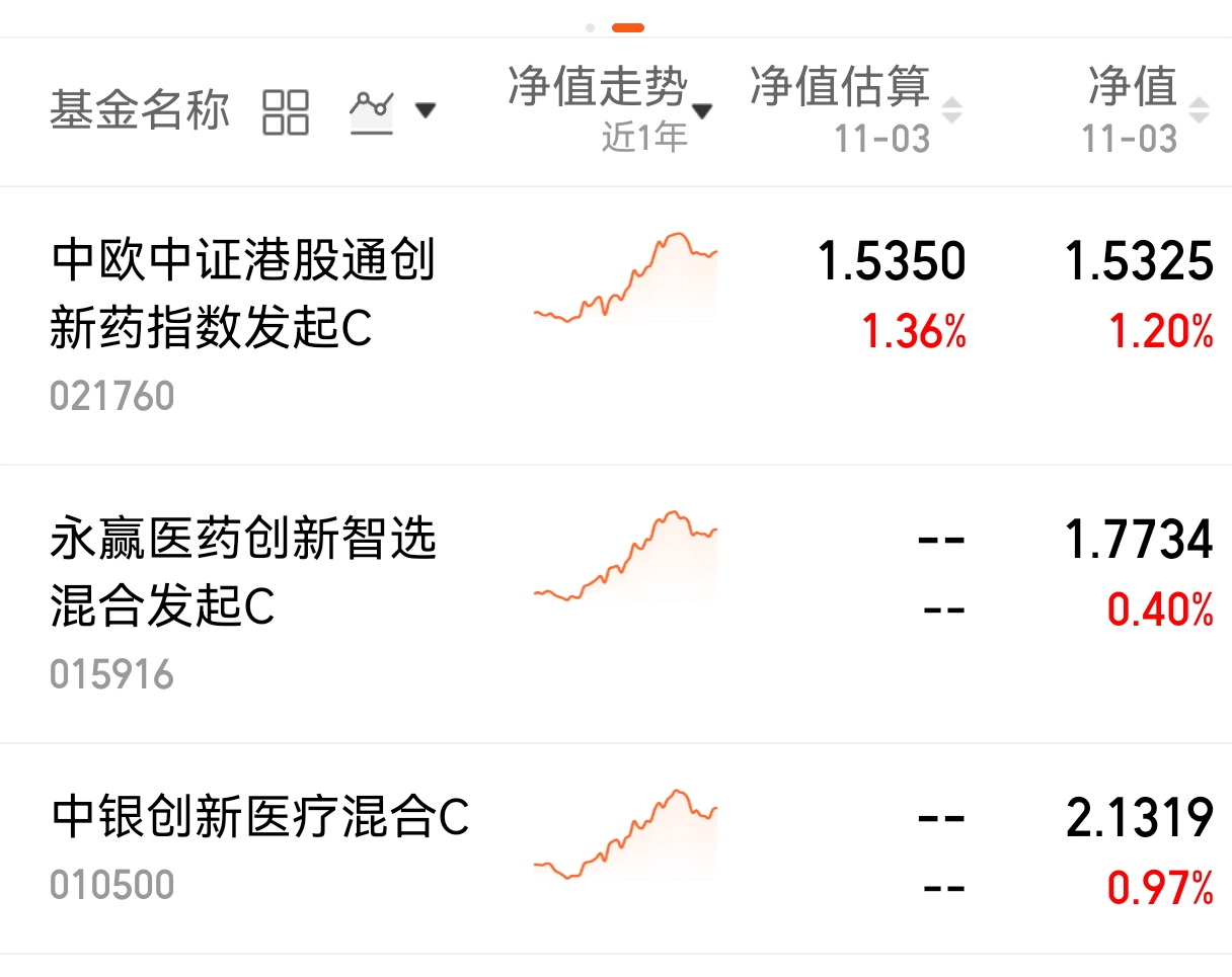 $中欧中证港股通创新药指数发起C(OTCFUND|021760)$涨幅1.20%