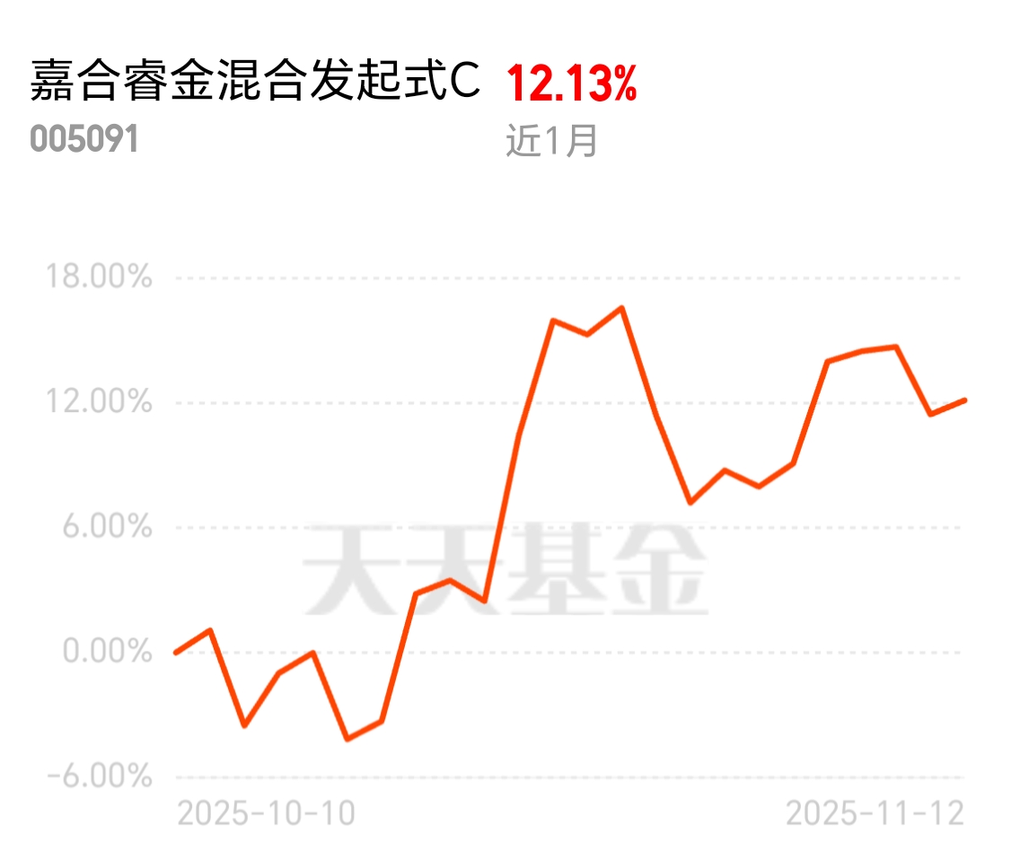 最近市场资金活跃度很高,科技板块成为吸金王,CPO和存储芯片因为成长空间大,备受青睐。嘉合睿金混合C紧跟市场潮流,近一个月收益12.13%,选对方向赚钱就是快。